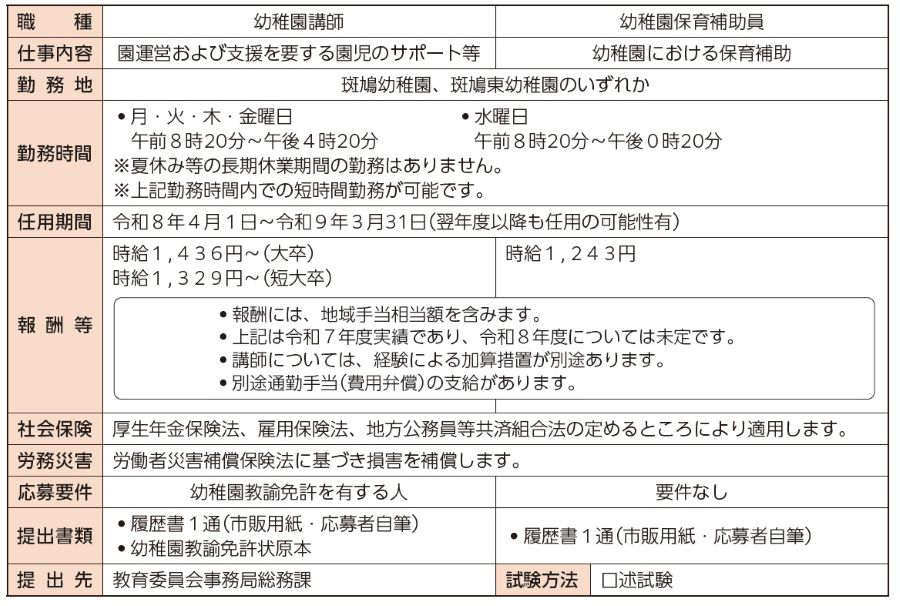 しごと 令和8年度パートタイム会計年度任用職員の募集 10/28 前の記事 次の記事 発行日 : 2026年01月01日 自治体名 : 奈良県斑鳩町 広報紙名 : 広報斑鳩 2026年1月号 問合せ:教育委員会事務局総務課 【電話】内線233 Tweet シェアする 令和8年度 会計年度任用職員登録のお知らせ スクールサポートの学習支援員を募集します