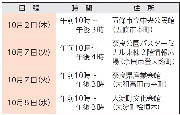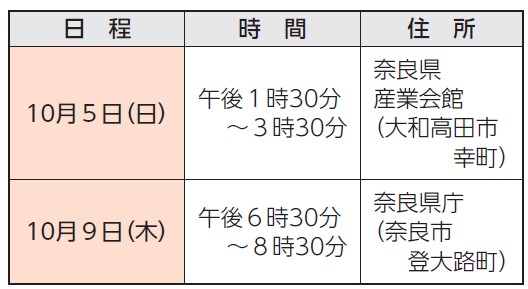 申込:事前予約制です。奈良県のホームページからお申し込みください。