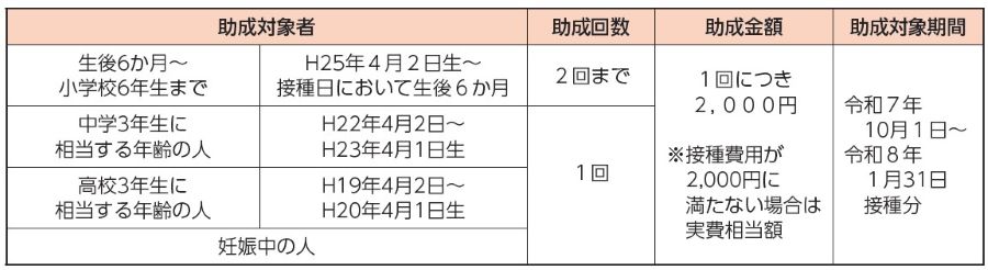 斑鳩町では、子育て支援の一環として、インフルエンザの予防接種費用の一部を助成します。(接種日において、斑鳩町に住民登録がある下記対象者)