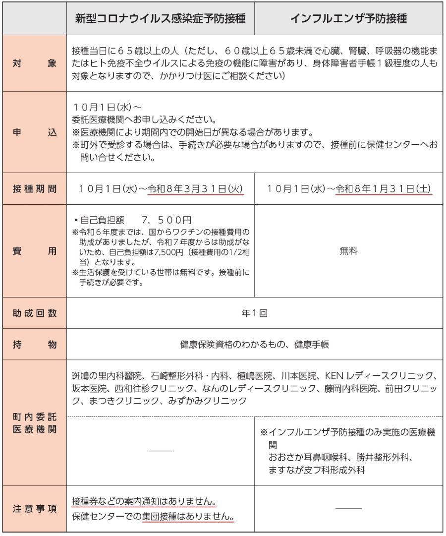 予防接種は、感染を100%予防するわけではありませんが、重症化などを予防する効果が認められています。かかりつけ医に相談し、十分に検討したうえで接種してください。(接種日において、斑鳩町に住民登録がある下記対象者)