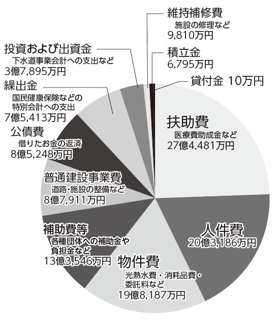 財政状況の弾力性を示す指標。経常的な一般財源(町税や普通交付税など)に対して、固定的に支出される経費(人件費や扶助費、公債費など)に使われた一般財源が占める割合をあらわす。
