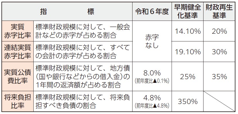 いずれの指標も国の基準を下回り、財政状況は健全!