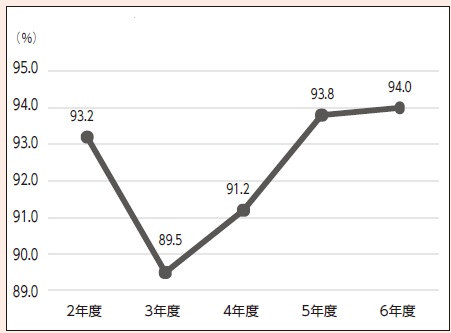 経常収支比率は、普通交付税の収入が増加したものの、児童福祉や障害福祉などに係る扶助費や物価の上昇による各経費の増加などが影響し、0.2ポイント悪化しました。
