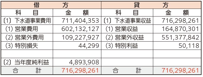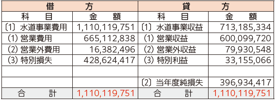令和6年度の決算額は、総収益が7億1,318万5,334円、総費用が11億1,011万9,751円、差し引き3億9,693万4,417円(前年度純損失1億2,709万281円)の当期純損失となりました。