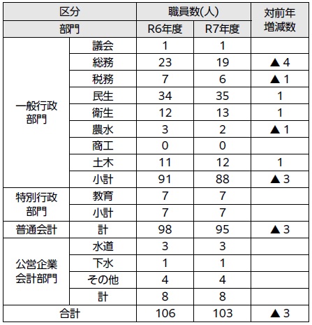 (1)一般行政職の級別職員数の状況(令和7年4月1日現在)