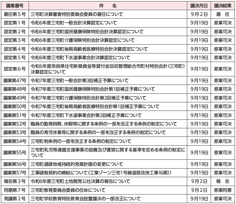 ■令和7年9月三宅町議会第3回定例会 議会報告