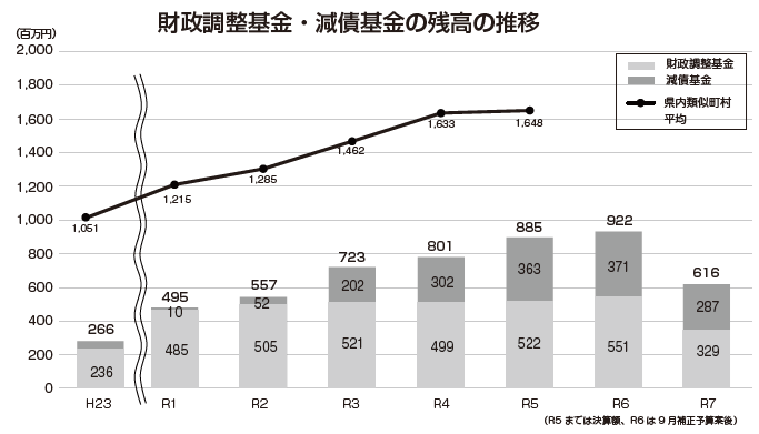 老朽化した公共施設の修繕や想定を超えるような災害など、予期せぬ支出に備える為にも経費削減に努め毎年少しずつ貯金の積立が必要であると考えています。