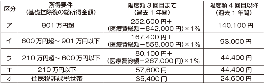 同月内に同一医療機関で限度額を超えたときは、その超えた分を支給します。具体的な金額等は次のとおりです。
