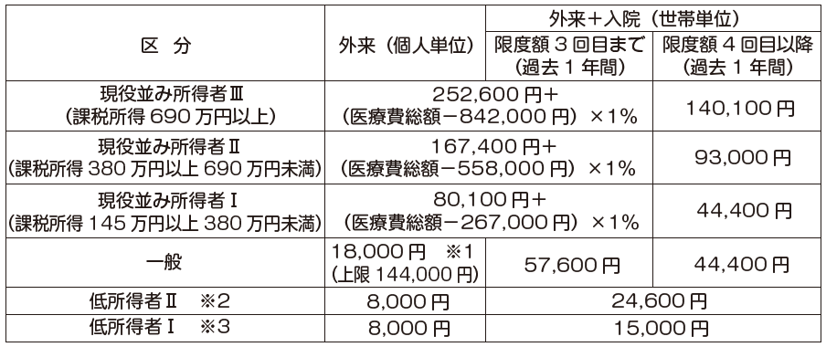 ◆「限度額適用認定証」または「限度額適用・標準負担額減額認定証」を提示することで、医療機関での支払いが限度額までとなります。認定証を発行できる人は、70歳未満または70歳から74歳で「低所得者II・I」および「現役並み所得者II・I」区分の人です。必要な人は住民課で申請してください。なお、保険税未納等により発行できない場合があります。