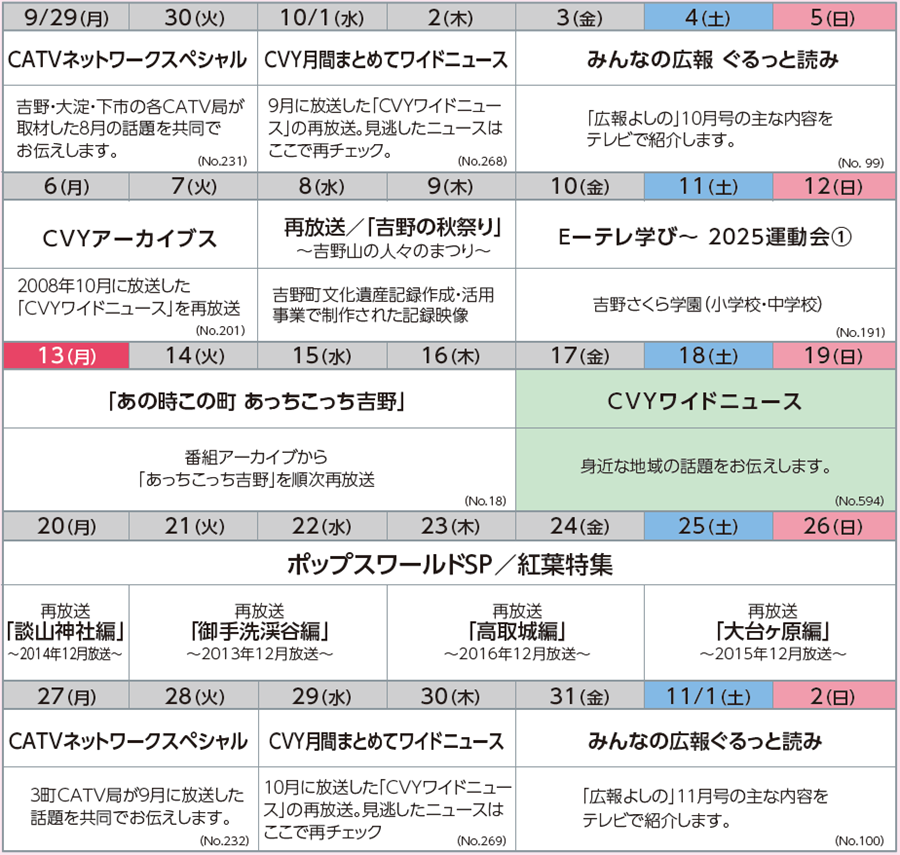 - 広報紙名 : 広報よしの 2025年10月号 No.1043