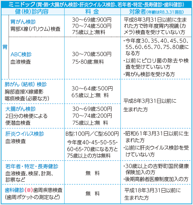 ※対象年齢にあたる、生活保護を受給中の方は、すべての健(検)診を、無料で受けられます。