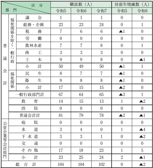(注)職員数は、一般職に属する職員数であり、休職者などは含み、臨時職員を除いています。