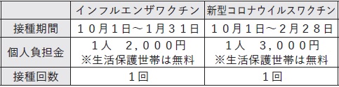 ※期間以外の接種では、公費負担は受けられません。