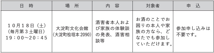 ■奈良若草断酒会橿原支部大淀例会のお知らせ