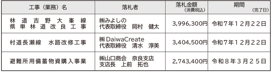 その他 入札結果 10/17 前の記事 次の記事 発行日 : 2025年12月01日 自治体名 : 奈良県黒滝村 広報紙名 : 広報くろたき 2025年12月号 入札日 10月21日 Tweet シェアする 献血へのご協力 ありがとうございました 図書室だより