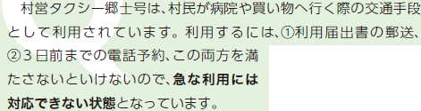 そこで、条件を見直せば、村民の利便性が高まるのではないかと考えました。利用登録・予約のオンラインシステムの導入や、3日前までの電話予約という条件を緩和できませんか。