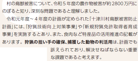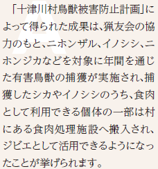 「十津川村鳥獣被害防止計画」で得られた成果、反省と課題、その課題等を踏まえて、どのような取組を実施したのか、また、今後どうする予定ですか。