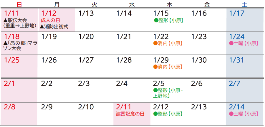 ※整形外科診療日…第1木曜日(午後のみ)(整形外科は診察日が変更になる場合があります)