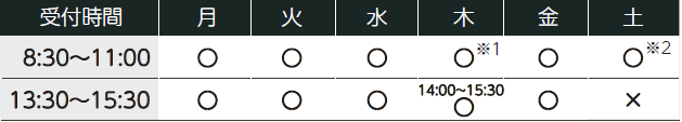 ※2 土曜診療日…第2・4土曜日(午前のみ)