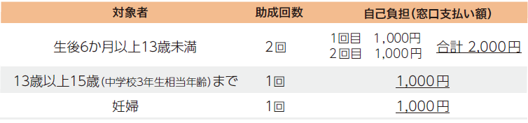 村では、村内の診療所で接種する場合に限り、インフルエンザウイルス感染症のまん延・重症化予防および子育ての経済的支援のため費用の一部助成をします。