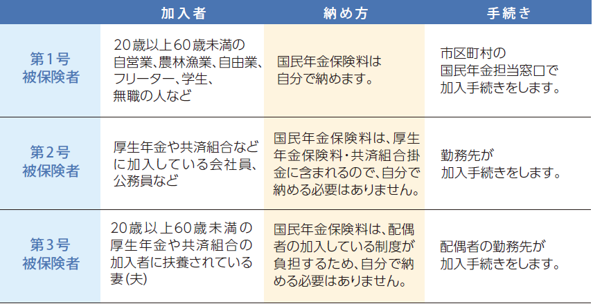 国民年金は、20歳以上60歳未満のすべての国民が加入し、社会全体で支えあう公的な制度です。