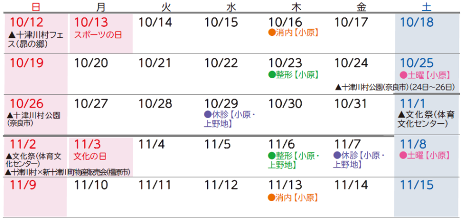 (整形外科、消化器内科は診察日が変更になる場合があります)