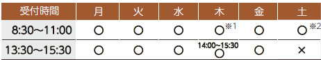※2 土曜診療日…第2・4土曜日(午前のみ)