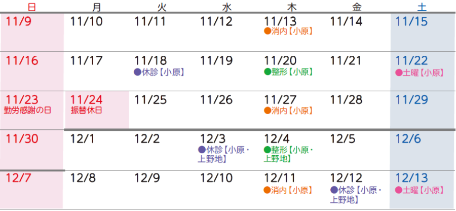 (整形外科、消化器内科は診察日が変更になる場合があります)