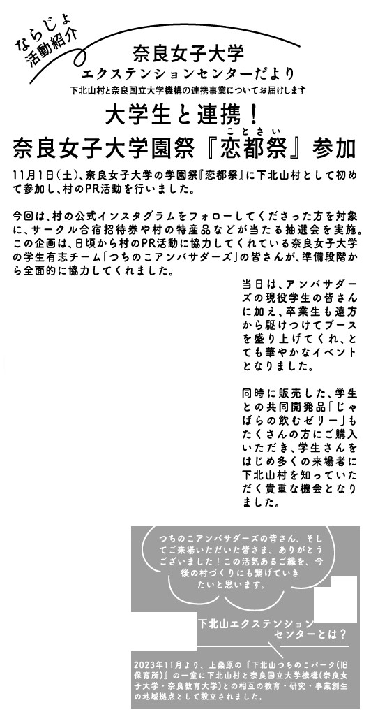 くらし つちのこ通信 2025 12月号 8/17 前の記事 次の記事 発行日 : 2025年12月04日 自治体名 : 奈良県下北山村 広報紙名 : 広報下北山 2025年12月号 Tweet シェアする 吉野警察署の交通窓口変更のお知らせ 下北山村職員の給与などの概要