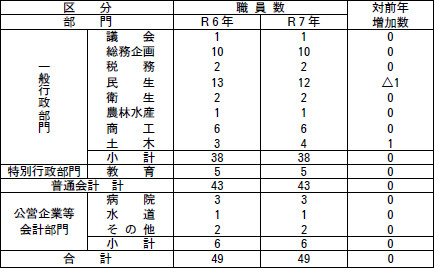 ※対象となる職員が1人の場合は、個人の特定を避けるため、記入していません。