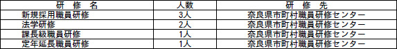 職員に高度な専門知識、技術等を取得されるため職員を研修機関などへ派遣し、研修を実施させています。令和6年度の受講者数は次のとおりです。