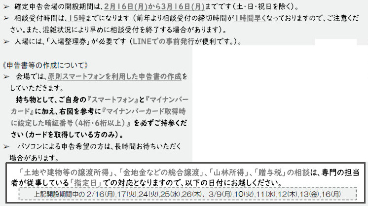 ■吉野税務署で確定申告の申告相談等を希望される方