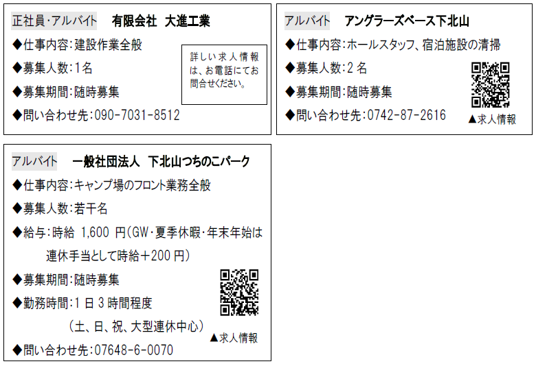 求人情報を掲載しませんか?村内の求人情報を掲載したい方は地域振興課または商工会までご相談ください。