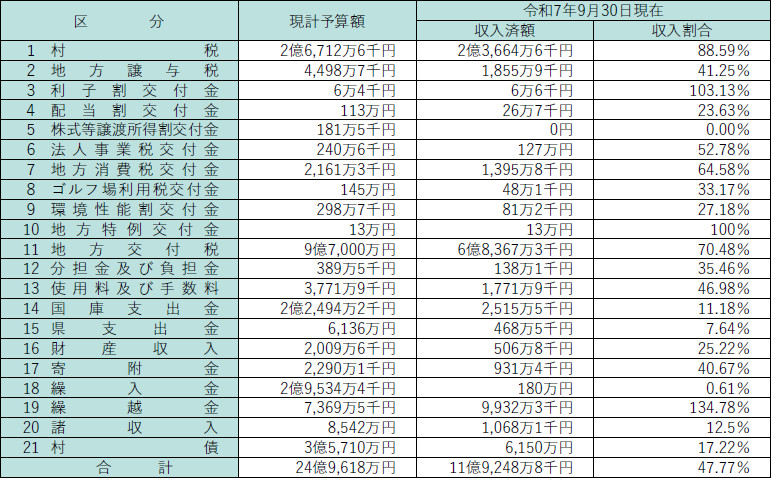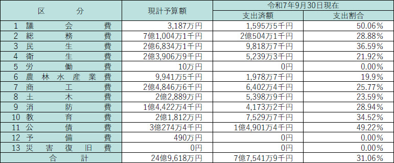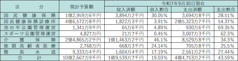 令和7年度上半期の一般会計及び各特別会計の執行状況について次のとおりお知らせします。
