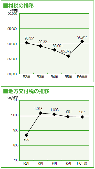 また、村税は納税義務者の減少等により減少傾向が続いておりましたが、法人住民税及び固定資産税の増額により前年度より、507万2千円の増額となりました。