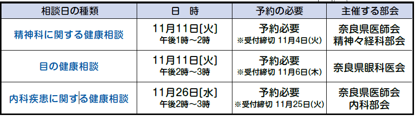 ■令和7年11月 奈良県医師会の学術部会が行う健康相談