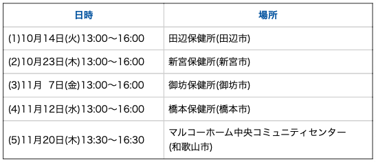 〔新宮保健所(新宮市)〕10月9日、12月11日 いずれも木曜