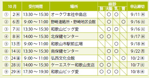 《がん集団検診(肺・大腸・乳・胃がん)の日程》