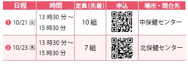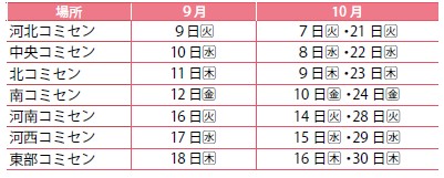 日程:10月2日(木曜日)、7日(火曜日)、9日(木曜日)、17日(金曜日)、21日(火曜日)、23日(木曜日)、30日(木曜日)
