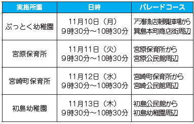 令和7年秋季全国火災予防運動の一環行事として、市内の幼年消防クラブ員による防火パレードを実施します。車両等の通行の際にはご協力お願いします。