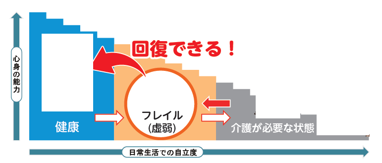 生活習慣を見直し、改善すれば再び健康な状態に戻ることができるのもフレイルの特徴です。