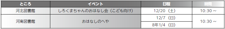 12/20(土) 13:30~…冬休み企画「映画と読み聞かせ」を楽しもう!(先着40人、電話、来館予約が必要)