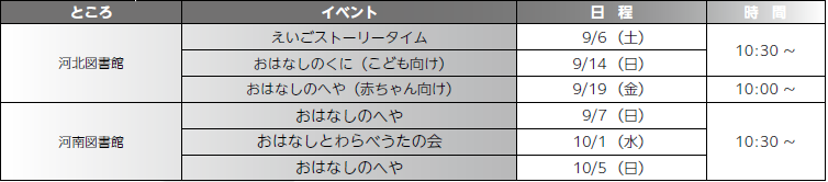 日時:(1)9/13(土)/(2)9/27(土)/(3)10/4(土) 10:15~11:00
