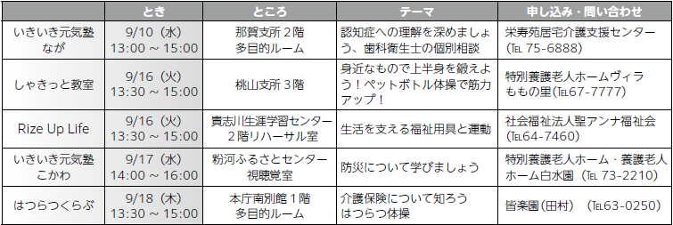 申し込み:9/8(月)以降に高齢介護課に電話くわしくは、本紙掲載コードを確認ください。