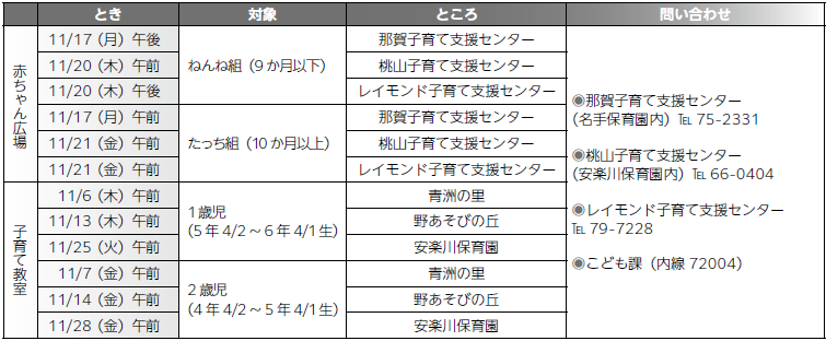 ■11月の赤ちゃん広場・子育て教室