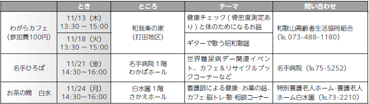 ※カフェほほえみの和、ほほえみの和・竜門ですよ、いこいカフェの開催情報については「福祉きのかわ」を確認ください。