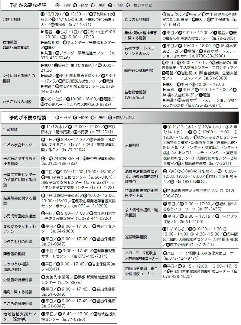 市役所の電話番号案内や相談内容など、くわしくは本紙掲載コードを確認ください。