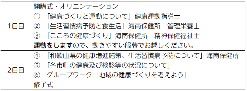 健康推進員として活動を行うためには、下記の養成講習会を受講することが必要です。