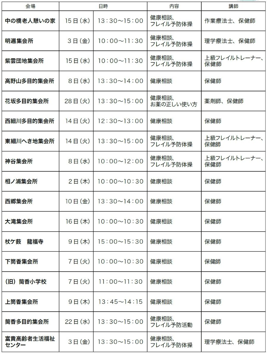 ※高根地区と湯川地区については、地域包括支援センターより訪問します。