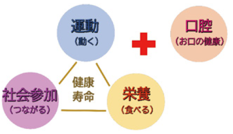 フレイル予防には、「栄養(しっかり食べる)」「運動(歩く力や筋力)」「社会参加(人とのつながり)」「口腔(しっかり噛む)」をバランスよく実践することが大切です。